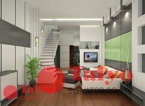 Mẹo: Khi nhà có cả thang máy gia đình và thang bộ thì chủ đầu tư nên ưu tiên diện tích cho phần thang máy và khi đó thang bộ chỉ đóng vai trò là thang thoát hiểm, sử dụng khi mất điện hoạt thang máy bị hỏng. Với chỉ khoảng 2.5 m2 vuông là đã có thể lắp được một bộ cầu thang máy nhỏ xinh, tiện dụng.