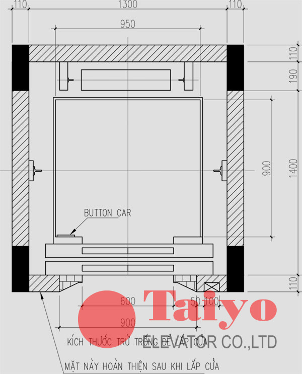 – Kích thước hố thang máy: 1800 x 1700 mm (rộng x sâu)