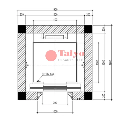 – Kích thước hố thang máy: 1500 x 1500 mm (rộng x sâu)