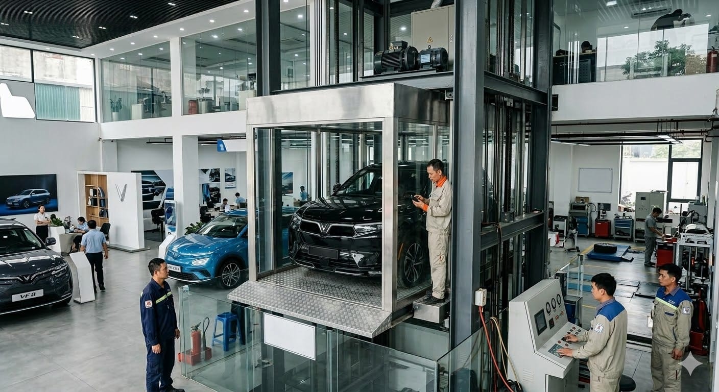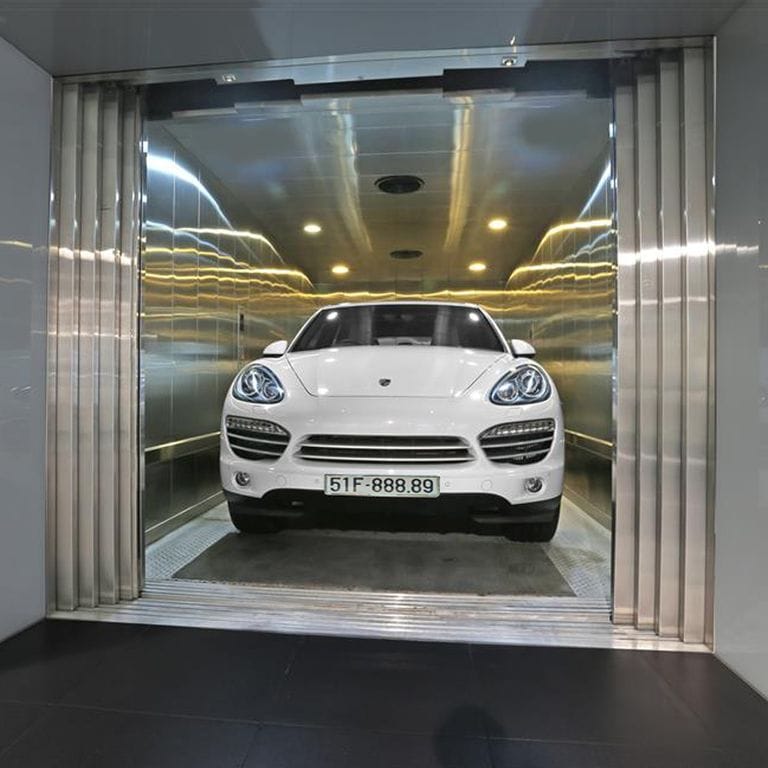Thang tải Ô tô có khả năng chịu được trọng tải lớn, chuyên nâng tải Ô tô từ tầng hầm lên xuống tầng trên trong nhà máy, xí nghiệp, nhà hàng, khách sạn, các khu công nghiệp,…